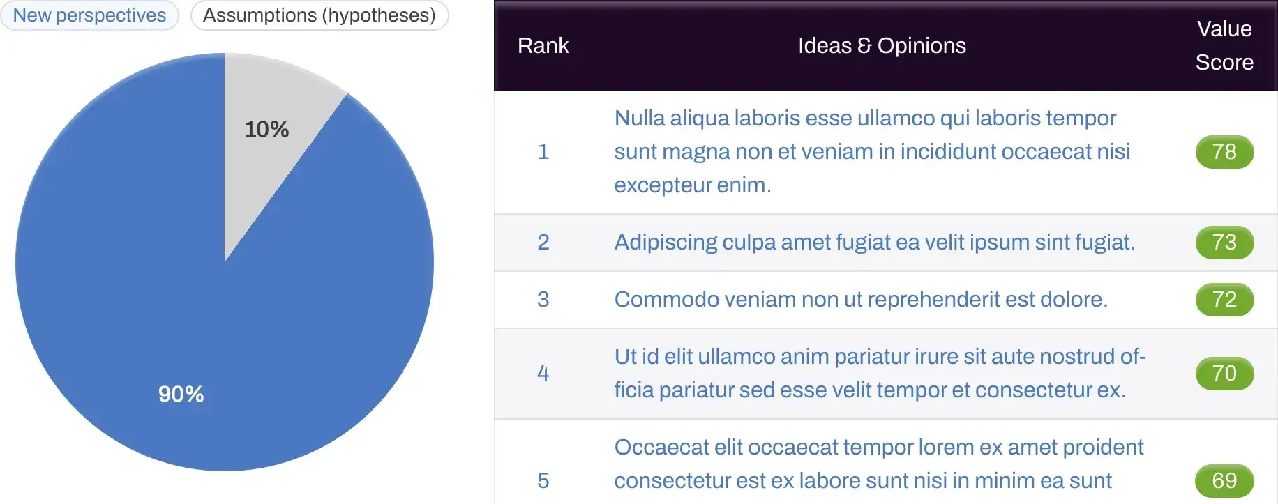 See immediately which suggestions are truly strong and not just coming from the loudest voices.